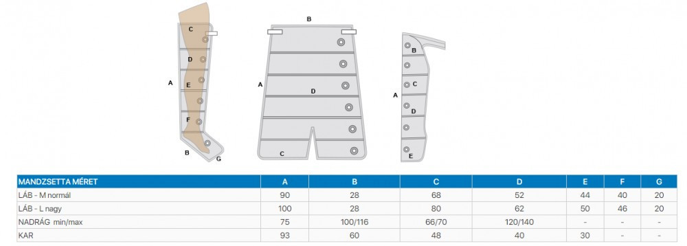 Orvostechnikai eszköz. 6 légkamrás nadrág mandzsetta Power Recovery géphez