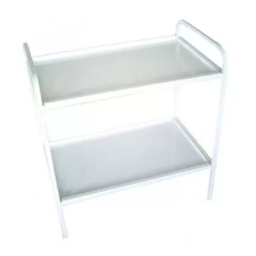 • Két polccal, fehérre festett váz, lemezlapos.