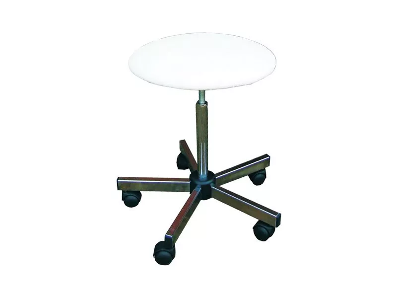 • Csavarorsós laborszék, háttámla nélkül, görgős lábakon.